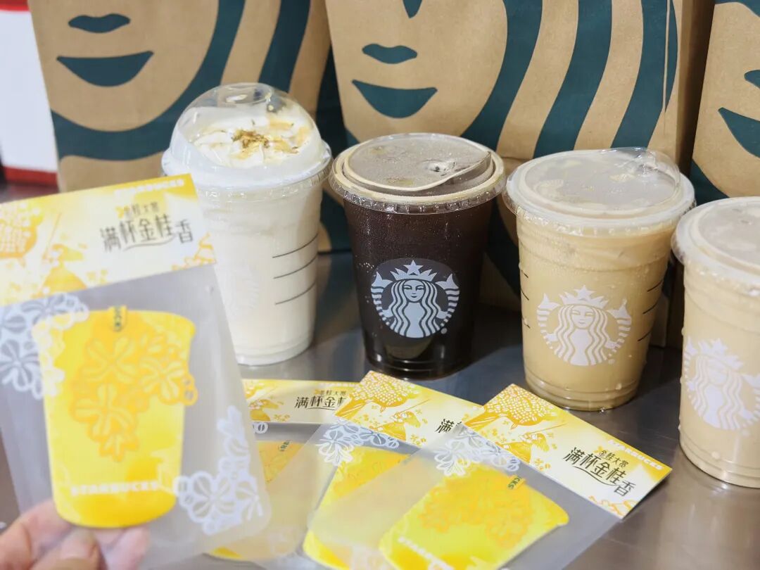 1、桂花产品打头阵,星巴克、瑞幸、沪上、1点点都在推